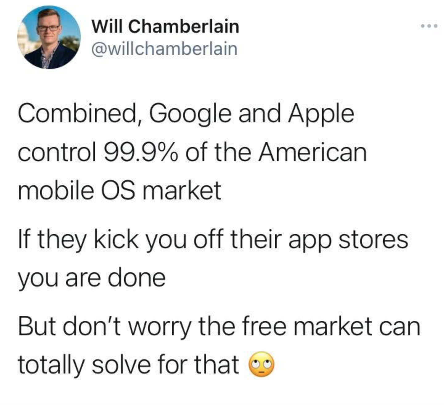Parler CEO John Matze complained on his site of being scapegoated. “Standards not applied to Twitter, Facebook or even Apple themselves, apply to Parler.” He said he “won’t cave to politically motivated companies and those authoritarians who hate free speech.”