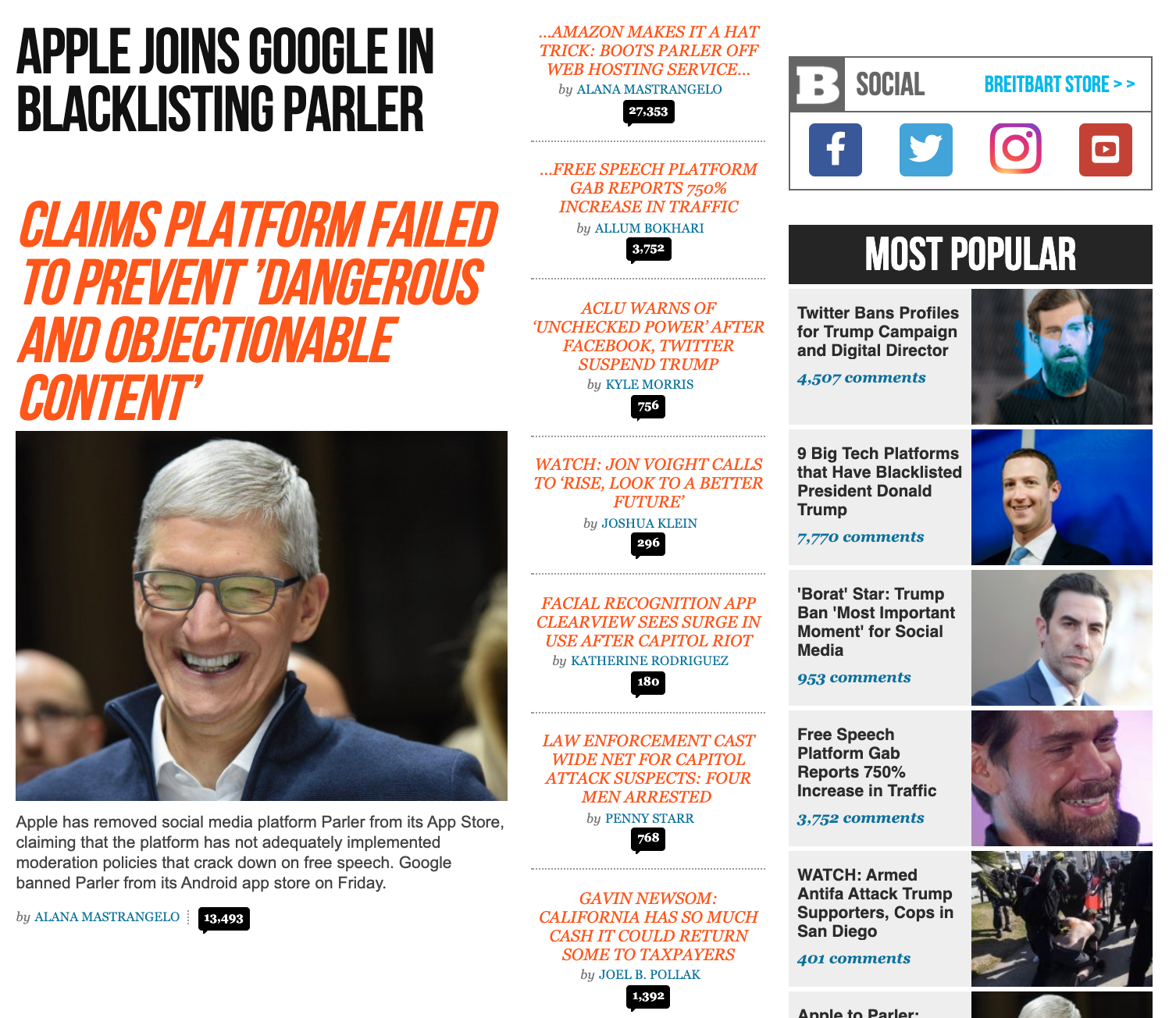 (Apple officially banned Parler a couple hours ago, after they failed to meet their obviously impossible ultimatum.)