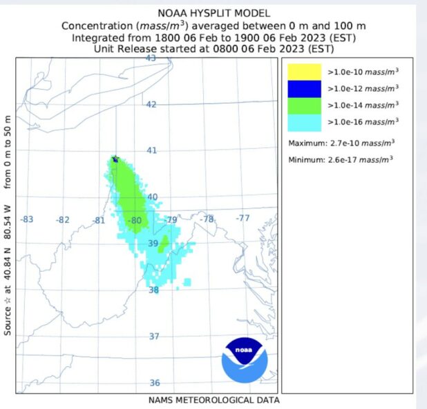 The National Oceanic and Atmospheric Administration released a map this week showing the dispersion of the chemicals from the explosion, showing it going all the way down into the Virginias.
