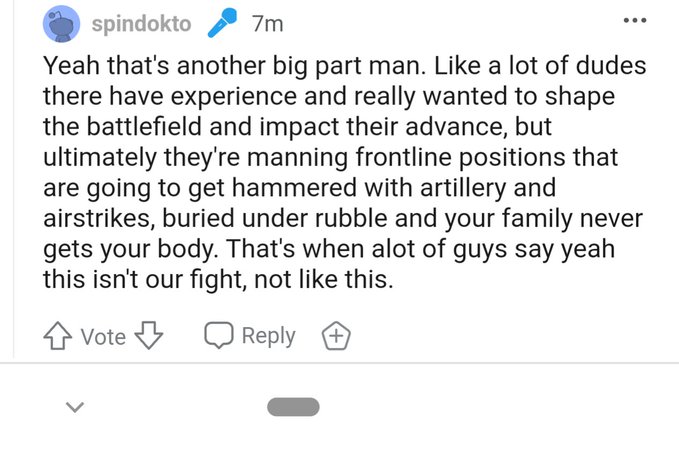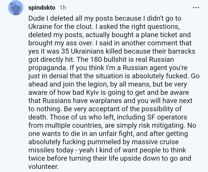 This is a Ukraine shill account. He’s been shilling the heroism of the brave heroes who went to fight in the Ukraine for gay pride or the glory of the Aryan race or whatever.