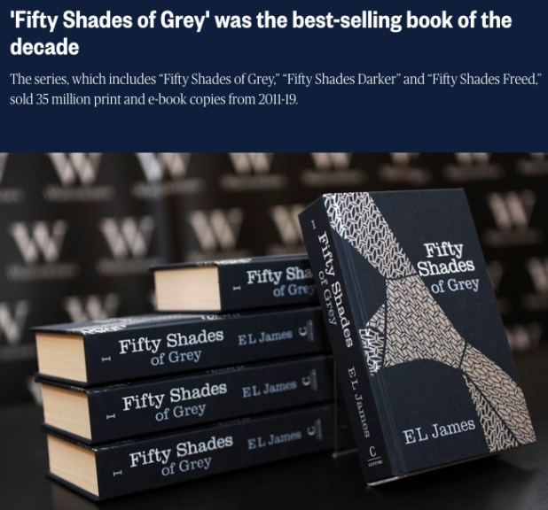 You all know that the 50 Shades of Gray trilogy topped the best selling books list for the 2010s, right?