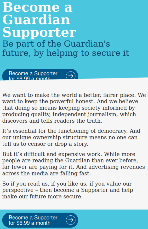 The feminist liberal-Jew paper The Guardian has an ad on every page of their site asking for recurring donations.