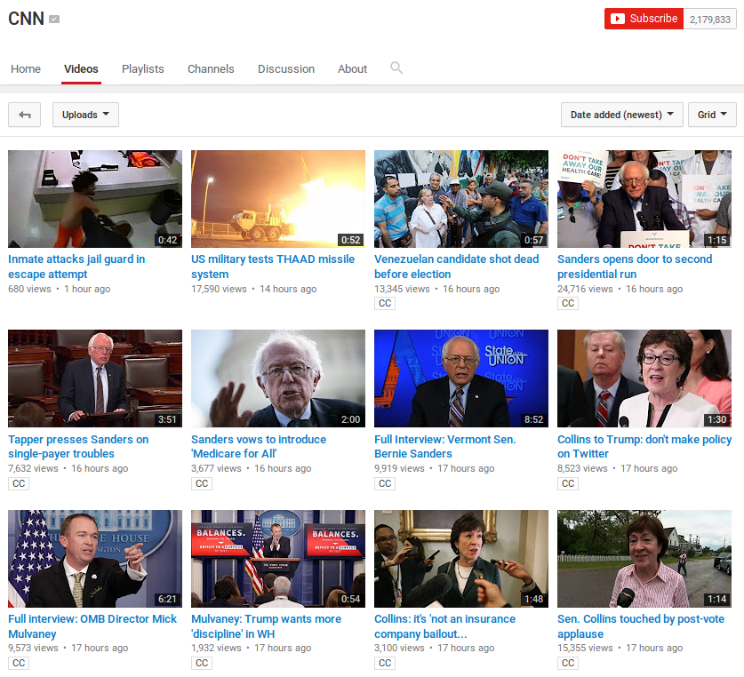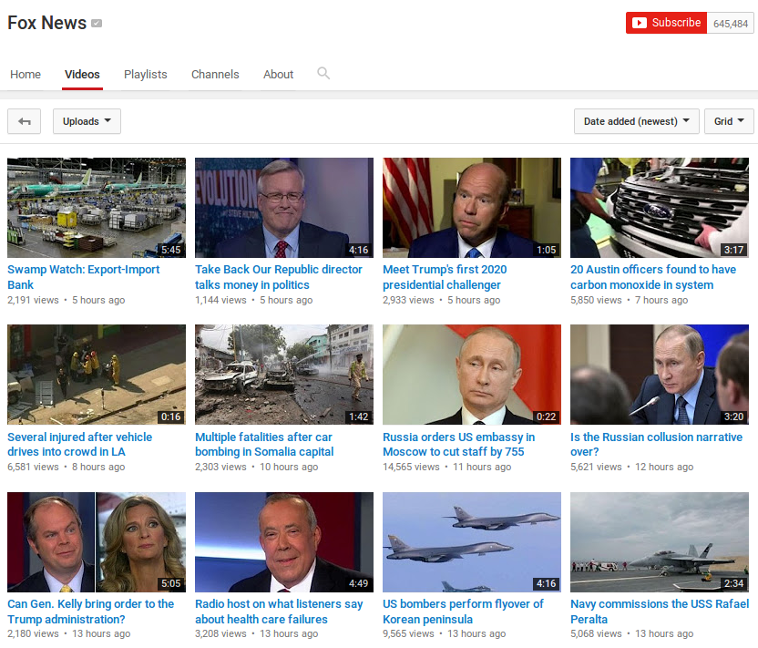 Fox News gets about 5,000 views per upload.