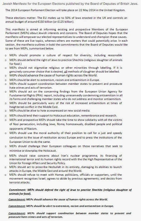 After the Jewish Board of British Deputies released a list of dos, don’t and demands expected from EU representatives prior to their election and/or re-election on the 22nd of May, the response of Nick Clegg, leader of the Lib Dems, was immediate.