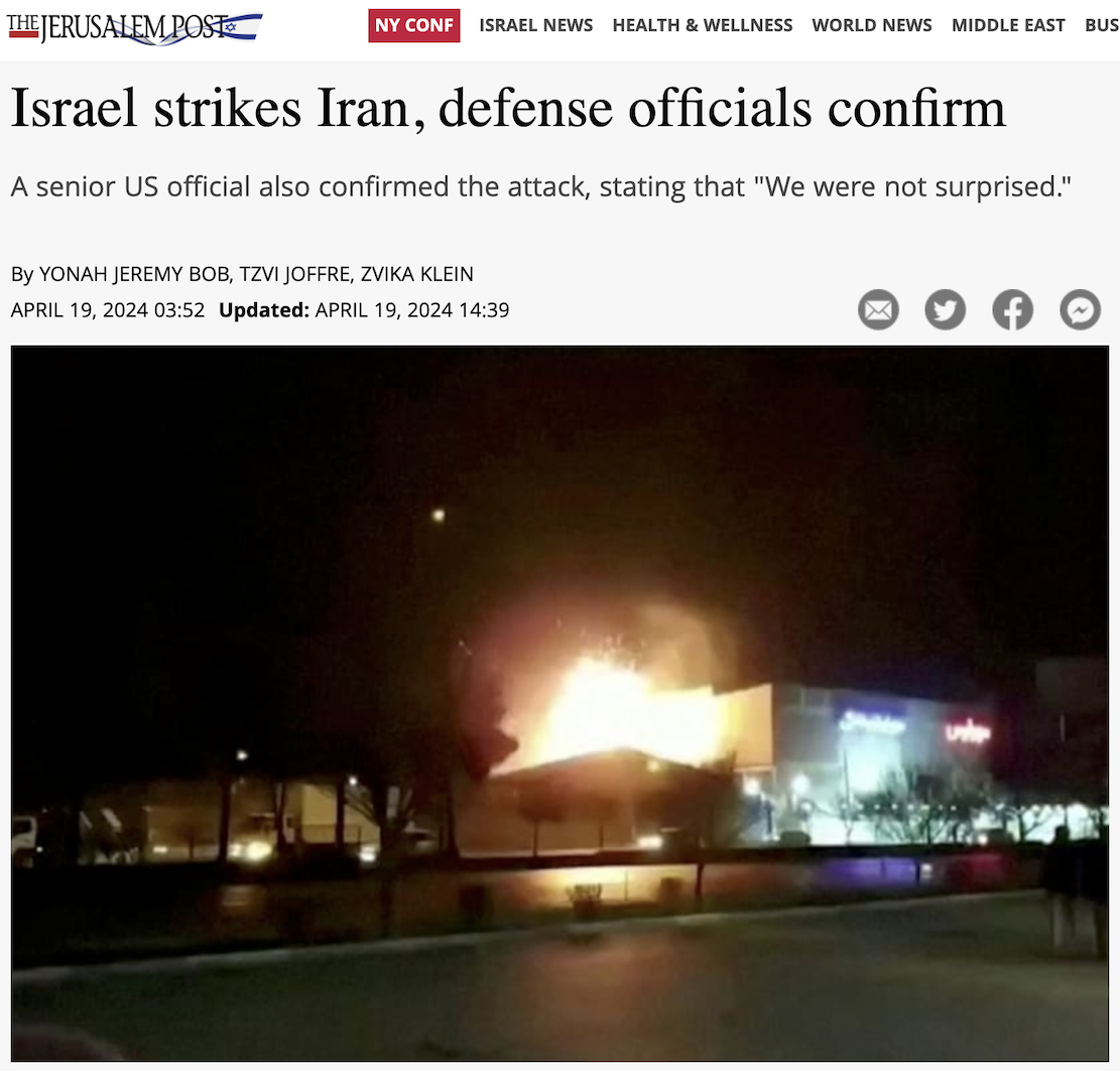Apparently, Israel wanted to look like they were doing something in response to the Iran missile attack, but they also didn’t want to escalate. Israel functions on this idea of “escalation superiority,” the idea that their security is based on the premise that they can always escalate. (They are attempting to demonstrate that in Gaza, but after seven months they’ve still not destroyed Hamas.) It’s interesting that they are not escalating, and instead doing a fake attack where nothing actually happens and the media just says it did.