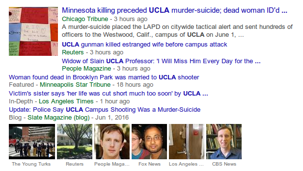 It also had to have been on purpose that virtually none of the articles after the identities of both suspect and victim were released featured the image of the suspect, and instead only the victim.
