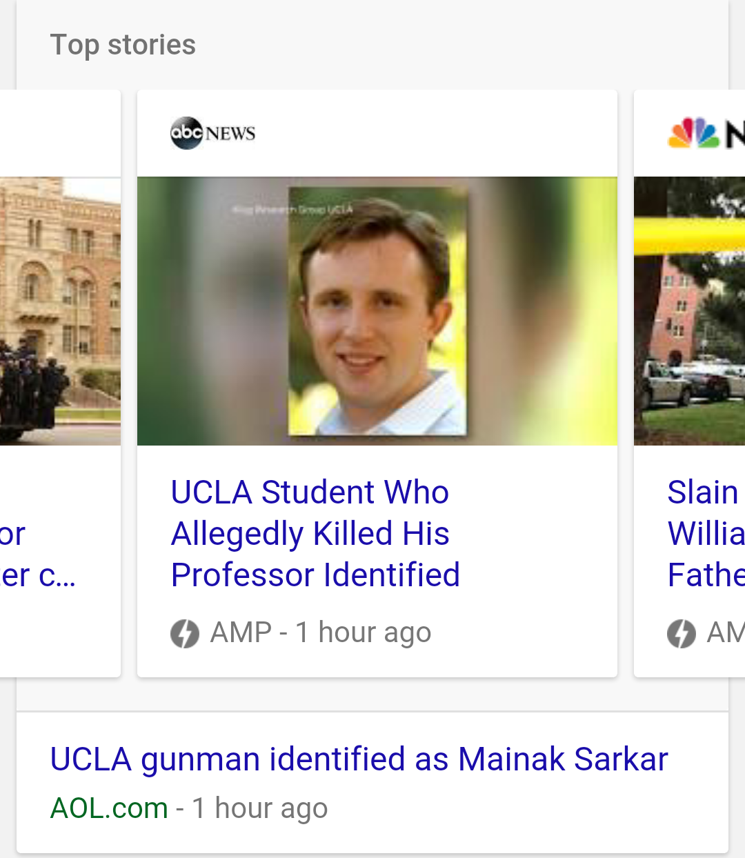 On Google, only one of seven stories features a picture of the suspect.