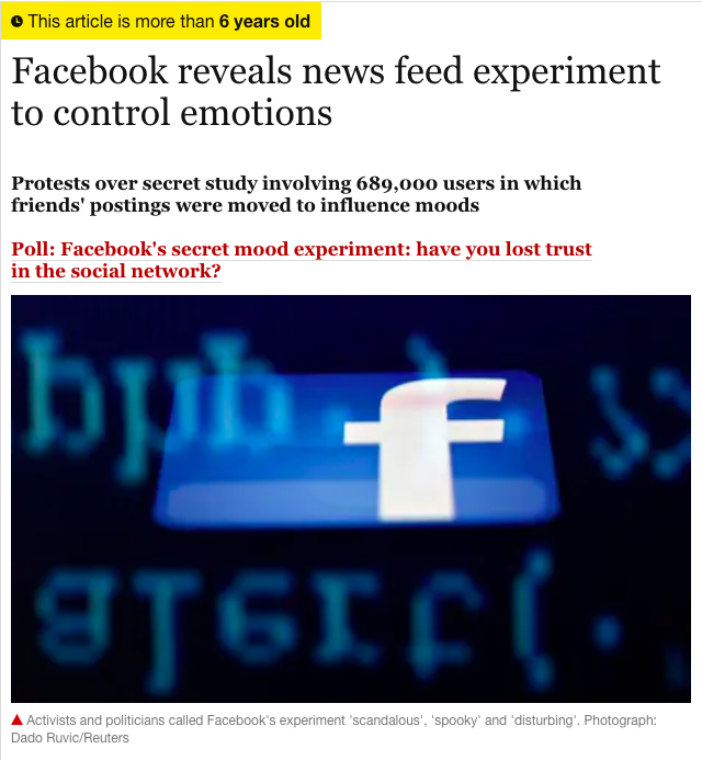 Remember when Facebook was caught cooperating with universities to run experiments on changing people’s emotions using their Facebook feed?