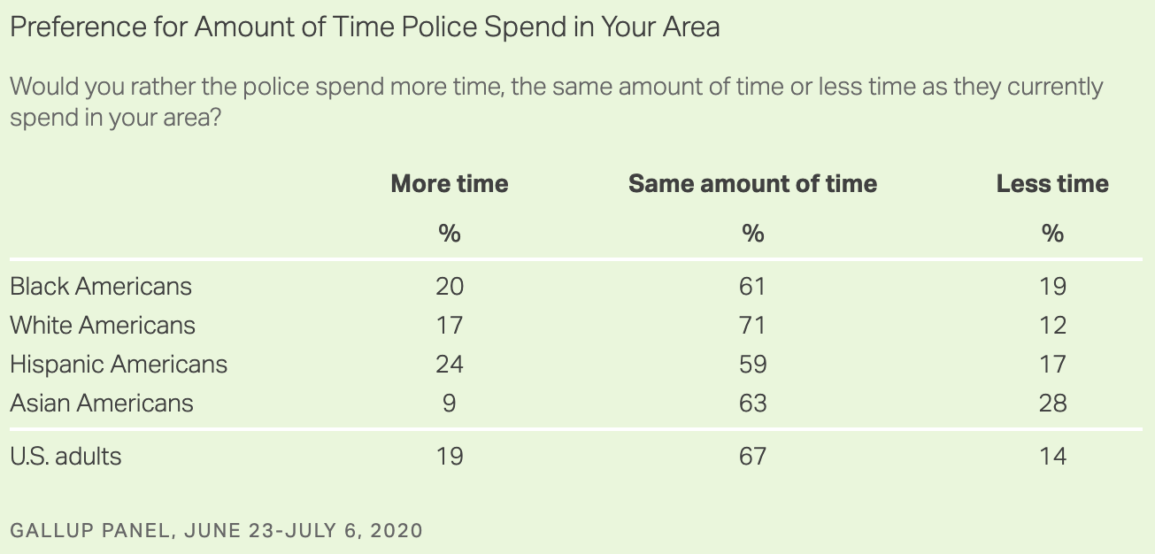 It’s so obvious that this is the case just on the point of removing the police for the sake of the blacks. A Gallup poll conducted between late June and early July showed that only 19% of blacks want fewer police in their area. 81% want more or the same amount.
