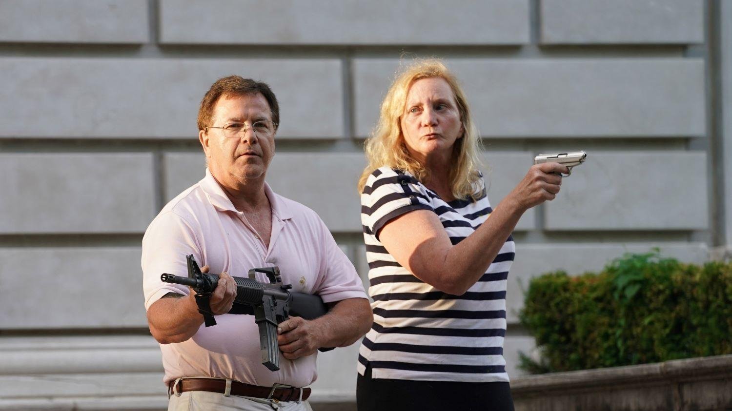 We saw this foreshadowed in St. Louis. The mob ran up into the front yard of a white couple. When they ran outside with their guns, simply to hold their ground and defend their property, they were accused of “threatening peaceful protesters.”
