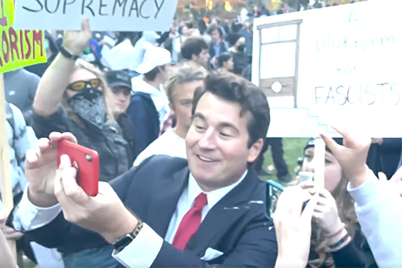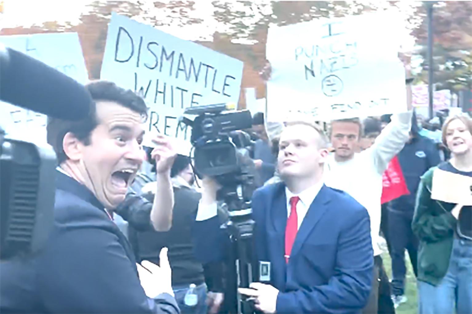 The BlazeTV personality caught the vile moment as he mingled with those rallying to stop the Uncensored America event also featuring Gavin McInnes, a co-founder of both the Proud Boys and the Vice media empire.