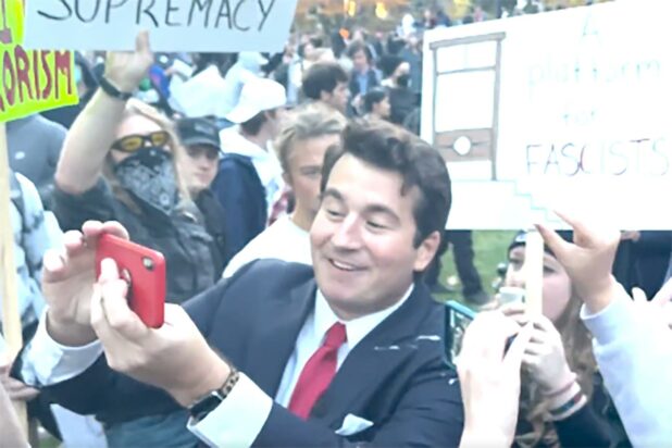 As Stein walked through the throng of angry protesters, he focused on one woman who aggressively flipped the bird at him while she also repeatedly screamed: “I f—ing hate you! I hope you f—ing die!”