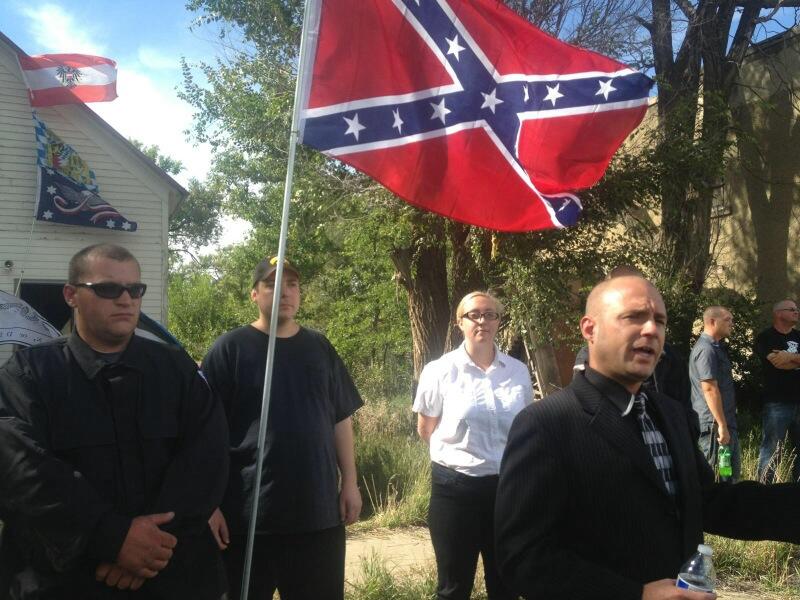 Commander” Schoep as he’s known in the National Socialist Movement, insists theirs is a non-violent organization to promote the interests of white people. Not everyone is hearing it. “As humans, they can be wherever they want to be, but they’re representing hate, and I have bi-racial babies and they’re hating what I brought out of love, and ya know, love has no color,” says protestor Christine Yellowbird.