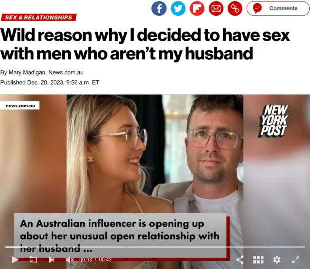 “Recently we had a discussion and decided that sleeping with other men was the next logical step to take my content to a new level, and he’s super cool with it,” she said.