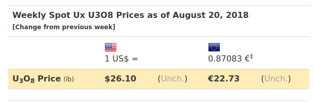 Uranium is worth $26 a pound – or over $5000 a ton.