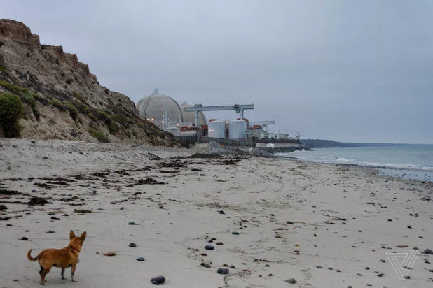 When I got to the San Onofre State Beach about 60 miles north of San Diego, the red sun of fire season was sandwiched on the horizon between a layer of fog and the sea. Surfers floated in a line off the shore. It looked like any other California beach — except for the row of signs that warned “Nuclear Power Plant Exclusion Area,” and the twin reactor domes rising above the bluffs.