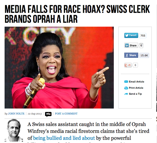 Marxist Race Profiteer, Oprah Winfrey, has been in the news a lot lately. There was the handbag incident in Switzerland, where the richest black woman on the globe cried racism because an Italian shop assistant, who spoke little English, allegedly steered her away from a $50,000 purse. Virulent racism as I’ve heard!