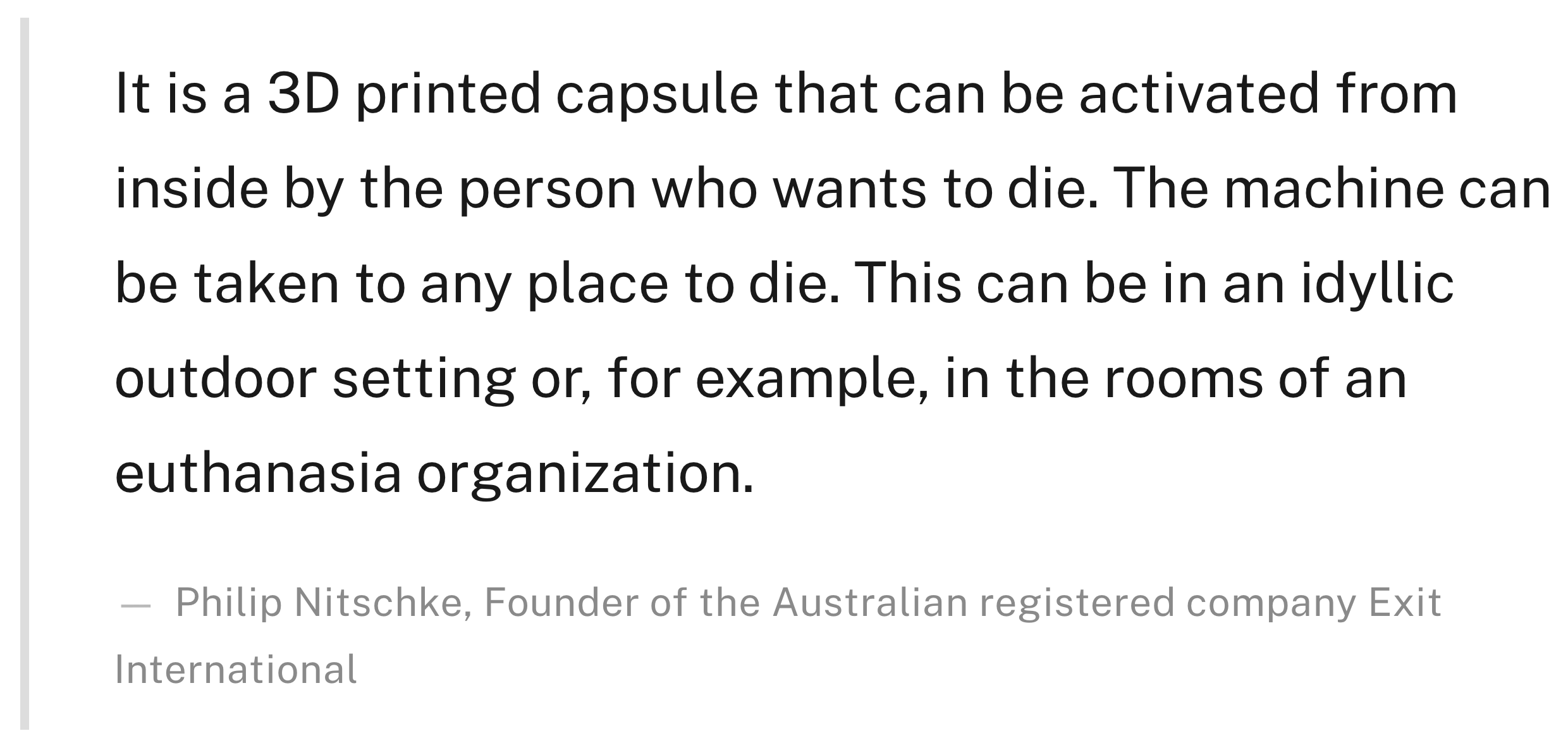What people don’t hear about is the OTHER pod life – dying in a suicide pod provided free by the government.