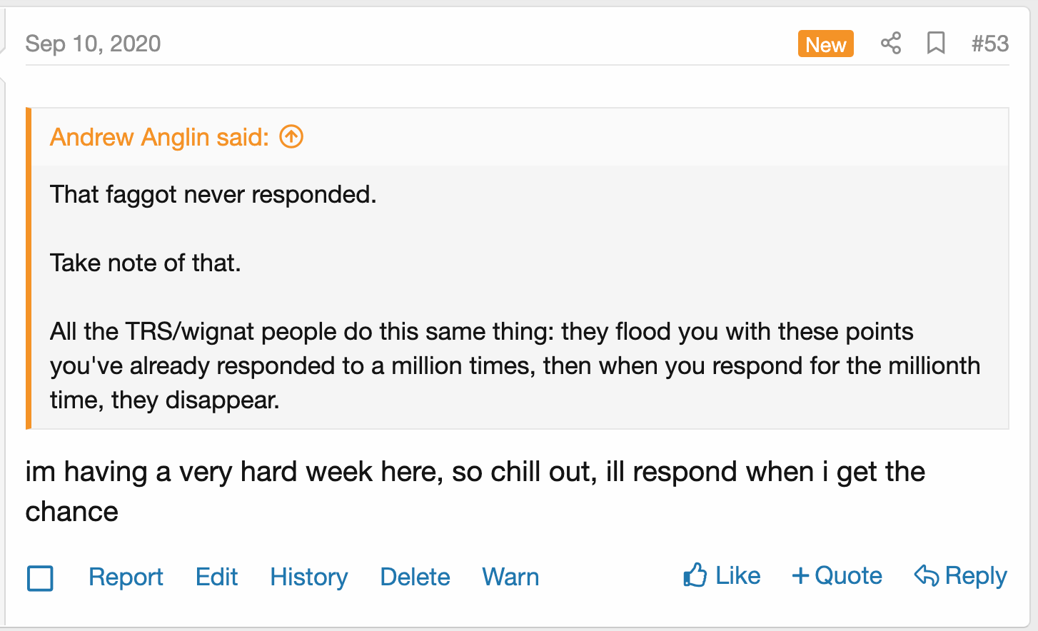 Then I noted that he wasn’t responding, and he responded with a post saying he was going to respond, some day: