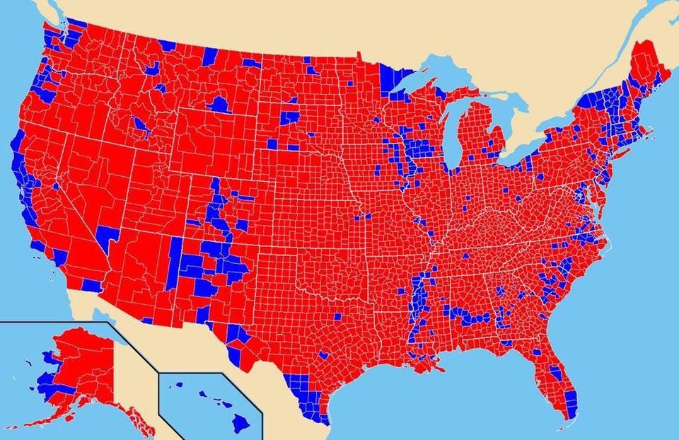 That is a full map of the counties that voted Republican/Democrat in 2016 (which was obviously the last real tally of voter sentiment in America), so that should be the territory that we get. We’re not going to get all of that, but we should get something in-between the first and second maps.