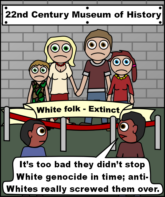 Other aspects of the religion, include sin – i.e. pride and enjoyment of one’s own race and culture, which by definition is exclusive. Blasphemy, is expressing the reality of multicult – the violence and harassment meted out to whites, expressing the desire to protect and defend one’s own ethnic group and home.