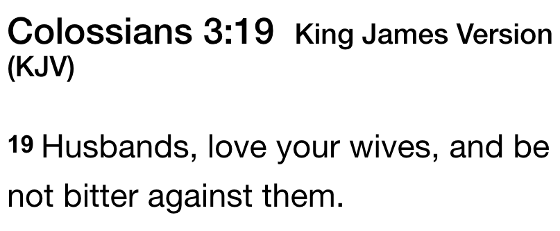 The closest the Bible ever comes to “respect” for women is in imploring men to not be resentful of their wives for their bad behavior. That is to say, to forgive them as you would forgive an annoying child.