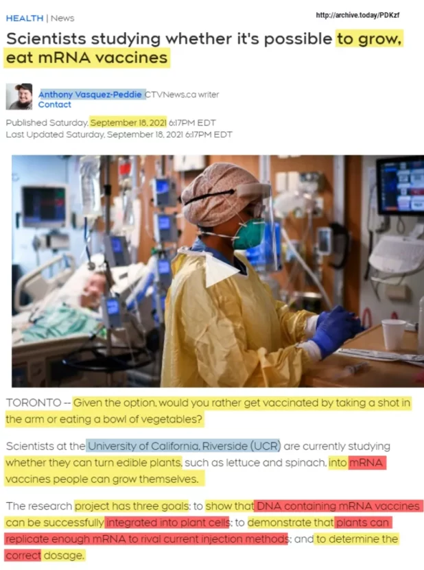Eat Your Vaccines: mRNA Gene Therapy Foods?https://t.co/YQ6ZNFa4jY