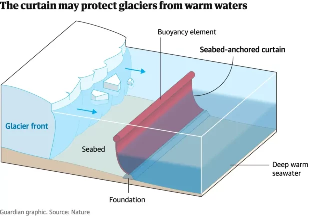 Scientists are working on an unusual plan to prevent Antarctic glaciers from melting. They want to build a set of giant underwater curtains in front of ice sheets to protect them from being eroded by warm sea water.