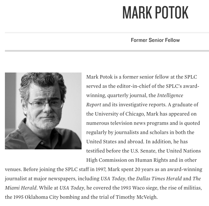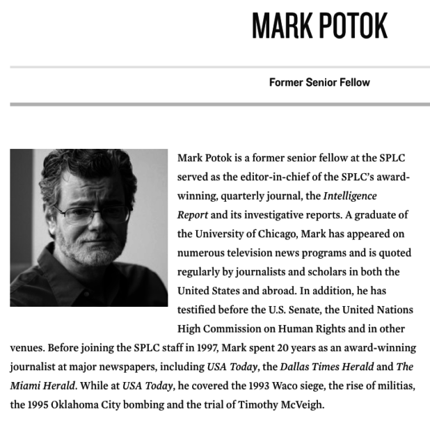 Then follow up with: what ethnicity is Mark Potok?