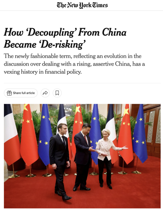 The US is telling Europe to stop strengthening relations with the Chinese, and Europe is still doing it. That gnarly cunt Ursula – a US shill – is going around demanding everyone obey mommy and stop strengthening relations with China, and no one is listening. The bitch was so bold as to try to change the term “decoupling” to “de-risking.”