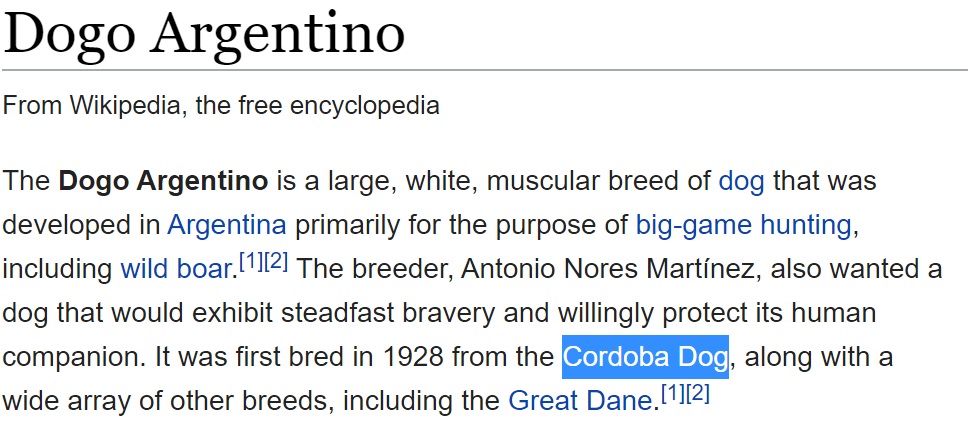 So the Dogo Argentino was initially engineered with the Cordoba as a base.