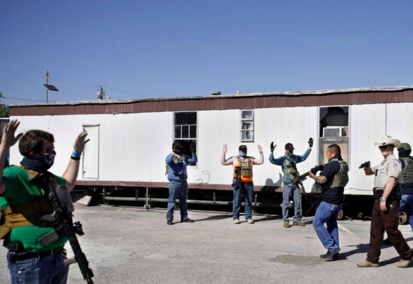 Ector County Sheriff’s SWAT team raiding a peaceful protest at Big Daddy Zane’s in West Odessa. The bar opened this afternoon despite Abbott’s latest orders, saying “all businesses are essential.”