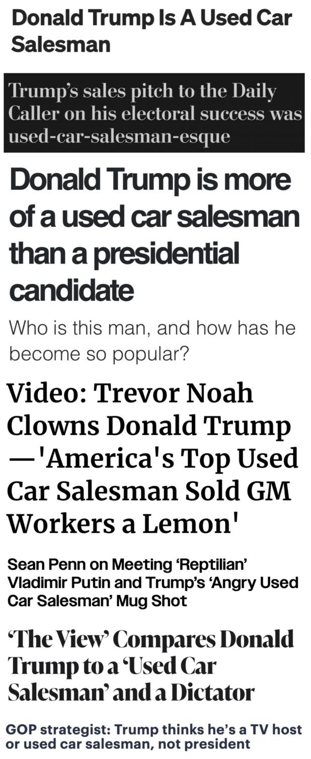One of the memes that leftists came up with and have used for the last 10 years is that Donald Trump is a “used car salesman.” This is very unoriginal and it isn’t especially incisive, but they’ve said it a lot. Apparently, Trump has embraced the logic that “if they’re going to call you a used car salesman anyway, you might as well just do car commercials on the White House lawn.”