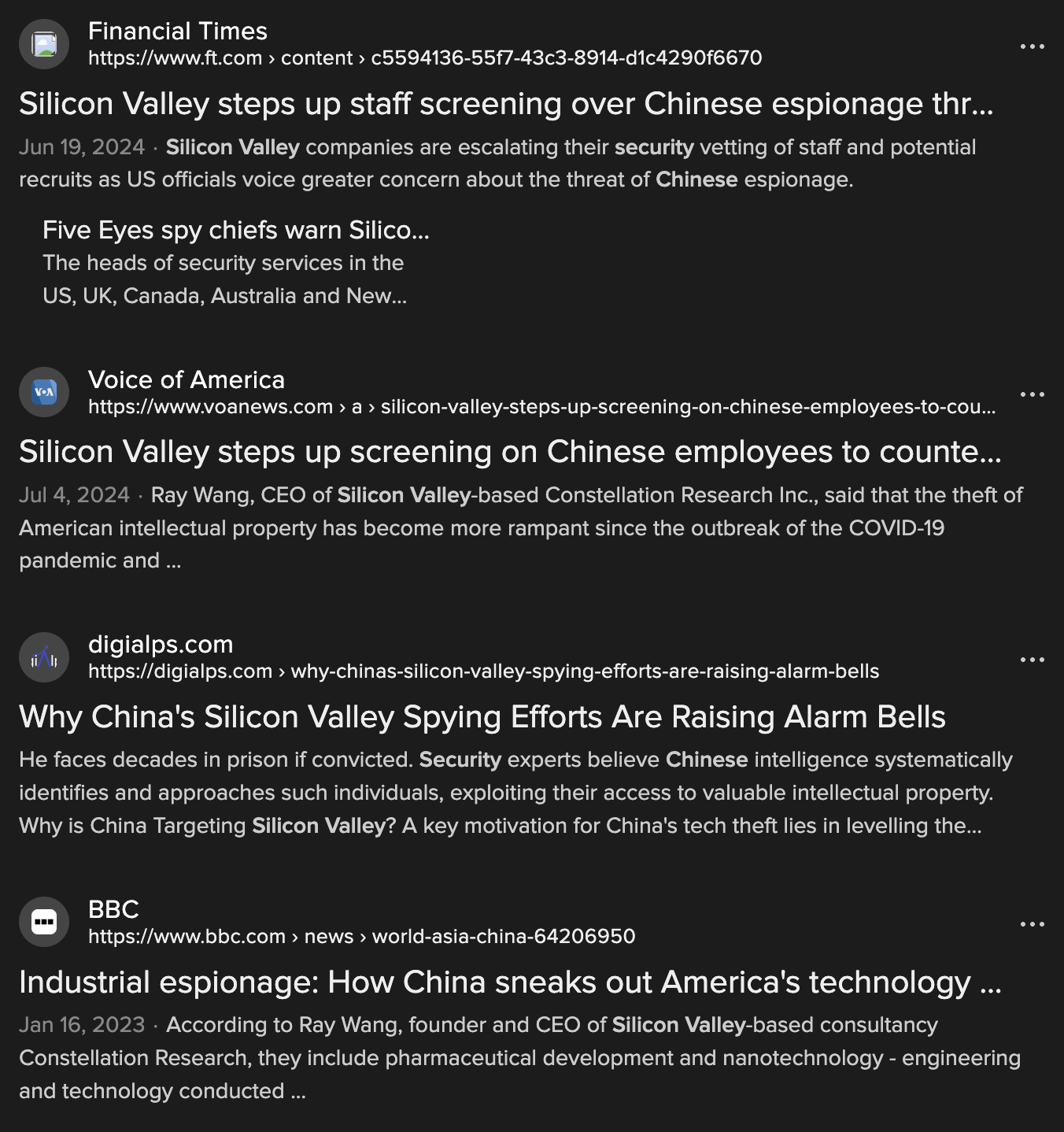 They claim that the Chinese are stealing technology. But anyone can steal technology, and everyone does that, and the only reason it would matter is if the Chinese were an organized, competitive threat to some larger ideal.