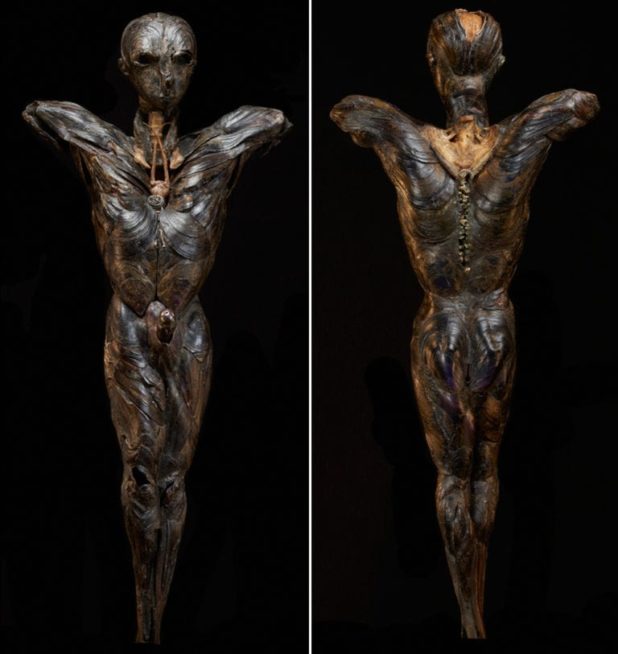 In 1998, she finished a sculpture of Lilith, the first woman in Jewish folklore, made from egg shells. She decided her next project would be the first man, Adam, and soon found the perfect material to make him: Blue mussel shells from Canada’s Atlantic coast, bought in bulk in Toronto’s Chinatown.
