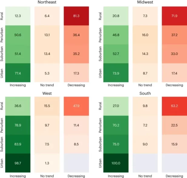 Researchers at the University of Illinois Chicago used population projections to find that, by the year 2100, almost half of nearly 30,000 cities in the US will experience a population decline.