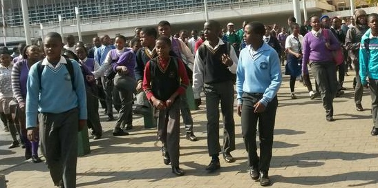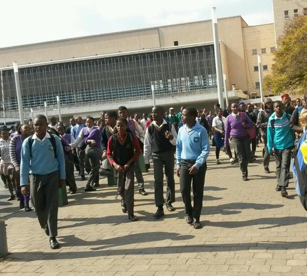 Sapa reported that the group was in Albertina Sisulu and Eloff streets around 14:00, and majority were standing in front of the education department building.