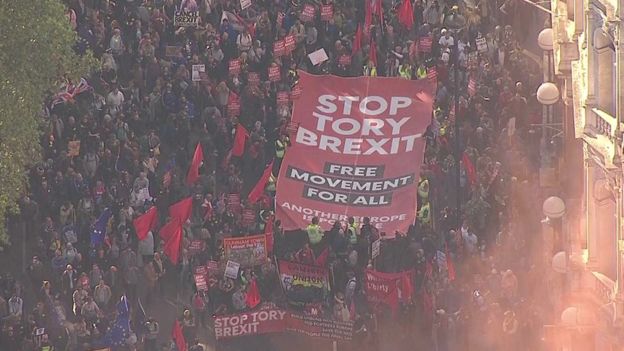MPs from all the main political parties are supporting the demonstration. The People’s Vote said stewards on the route estimated 570,000 were taking part.