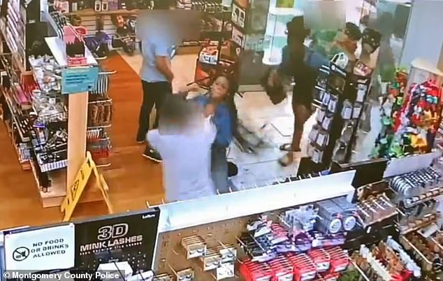 Montgomery County Police have released surveillance video showing three young women wreaking havoc at Westfield Wheaton Mall on September 23, where they brutally punched and pepper-sprayed four people including a store owner who caught them shoplifting.