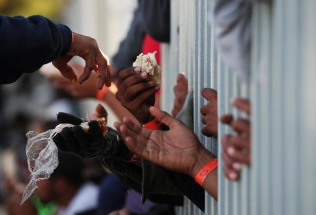 Hundreds of people fleeing violence from Central America were hit with punches, stones, and coffee. Far from being the danger, police are protecting them from what’s outside.