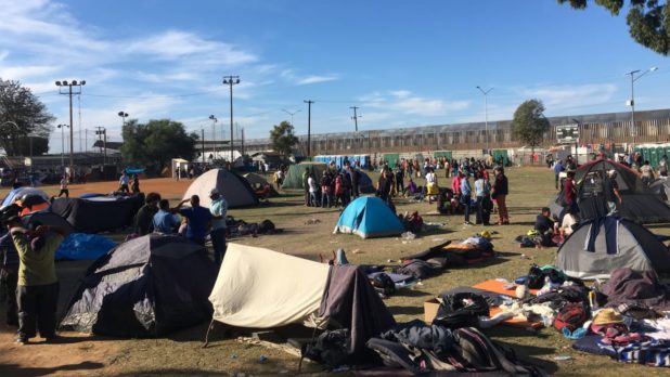 Migrants say that opponents of the caravan harassed and threatened them into early Saturday morning. At around 1 a.m. migrants say a group of assailants threatened them from the fence of a baseball park inside the sports complex where the migrants were camped for the night. There were small children sleeping in the area. No city official confirmed the account, though migrants said police intervened and prevented the alleged assailants from throwing rocks.