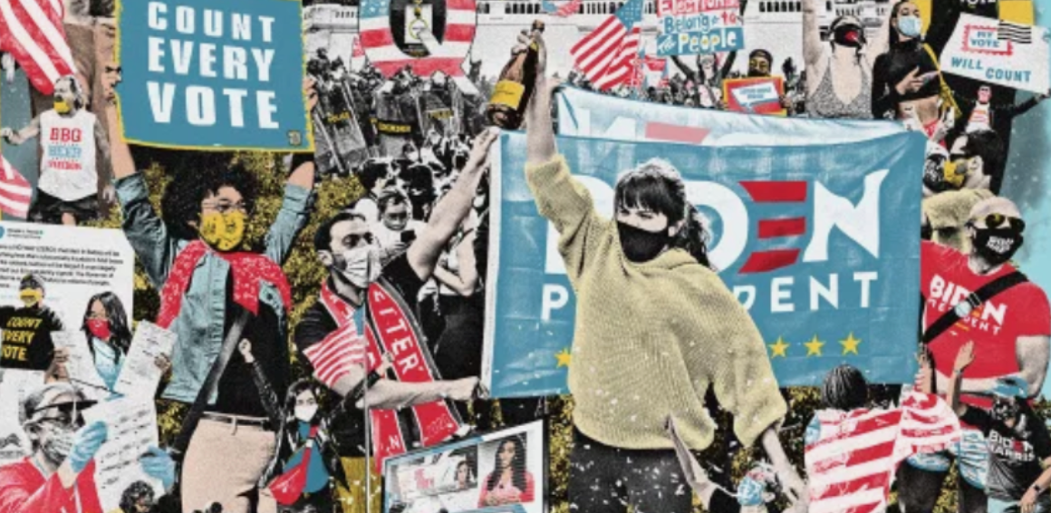 “A weird thing happened right after the Nov. 3 election: nothing,” author Molly Ball begins. “As President Trump refused to concede, the response was not mass action but crickets. When media organizations called the race for Joe Biden on Nov. 7, jubilation broke out instead, as people thronged cities across the U.S. to celebrate the democratic process that resulted in Trump’s ouster.”