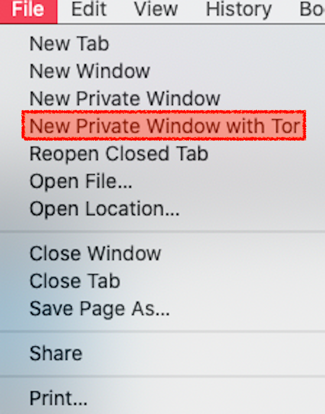And then click on “new private window with Tor.”