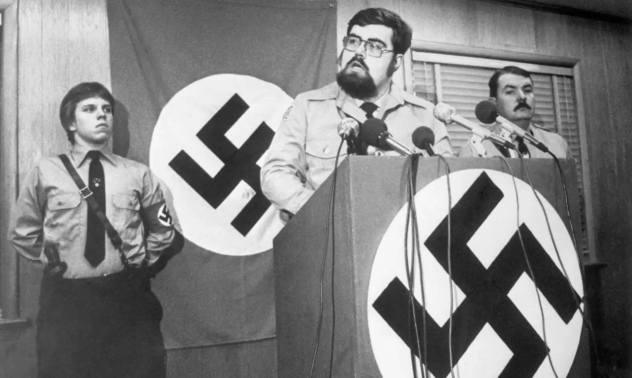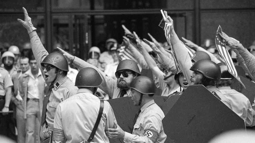 Someone mentioned that the ANP was the group that marched through Skokie, Illinois in 1978. In fact, Ramz’ friend was prominently photographed at the event: