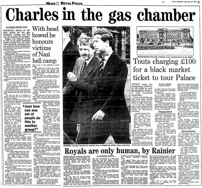 On Thursday, May 20, 1993, the heir to British throne visited the former Nazi “extermination camp” Majdanek on the outskirts of the Polish city of Lublin and was given a tour by a youngish guide named Tomasz Kranz—who is now the Director of the Majdanek State Museum.