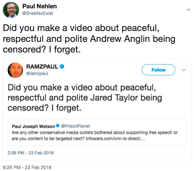 Paul Joseph Watson and Alex Jones are also facing censorship now.