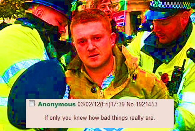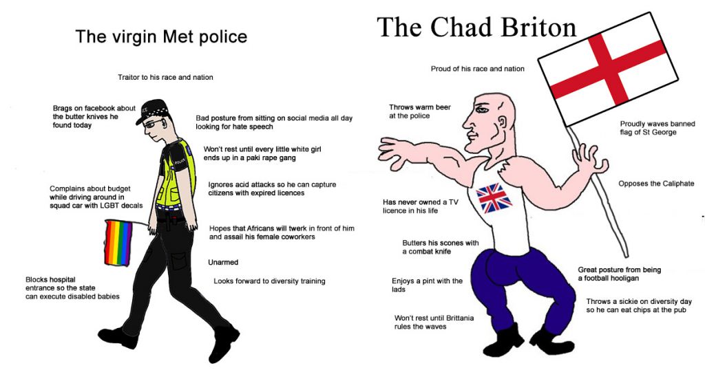 But then I saw all the Tommys out on the streets, chasing down police and working themselves up into a righteous rage at the treatment of their boy, Tommy Robinson, by the UK police.