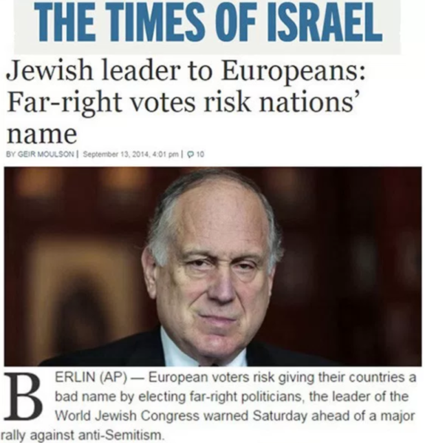 One of the world’s top Jews, Ronald S. Lauder, president of the World Jewish Congress, gave $1.1 million dollars of his own money to an organisation called Secure America Now, which produced anti-Islam adverts to run on American TV.