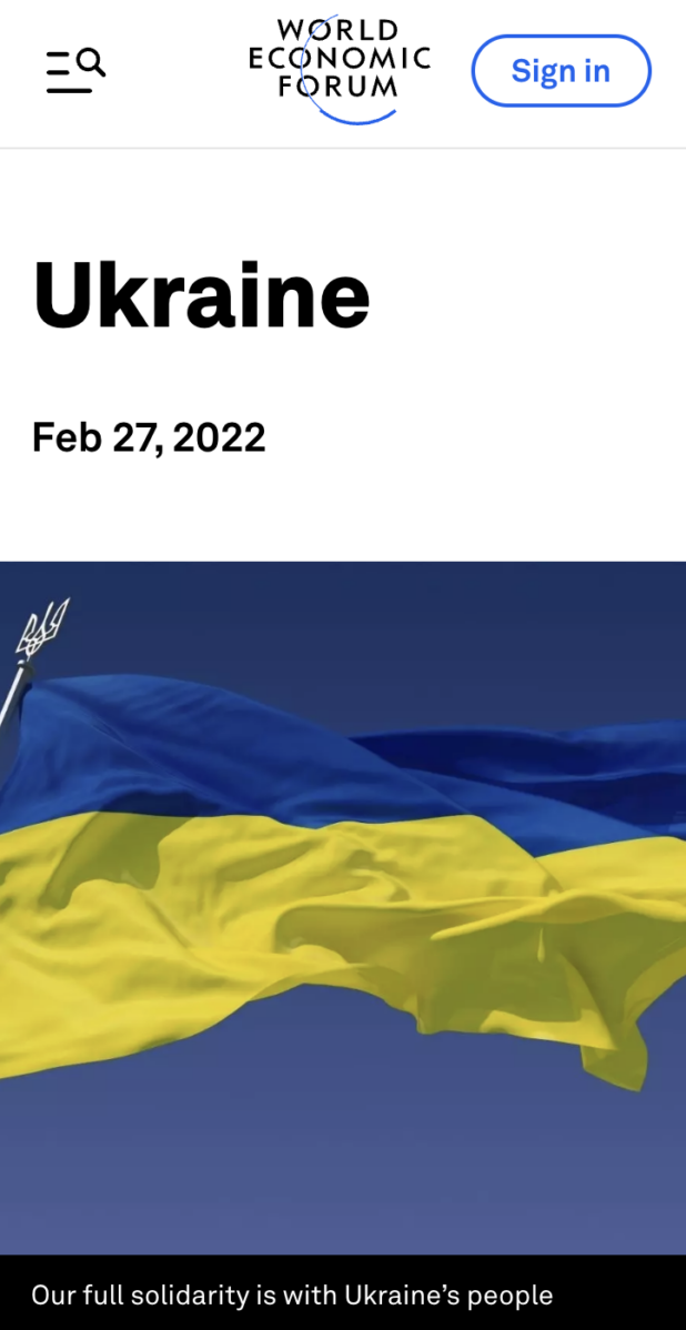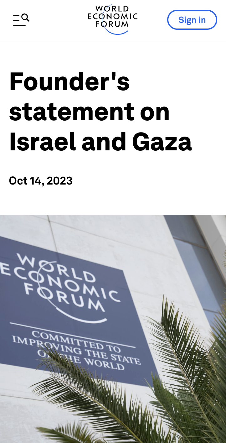 The WEF website has official statements standing with the Ukraine, Israel, and Taiwan, as well as condemning Chinese activity in the South China sea (and condemning China for a bunch of other stuff as well).