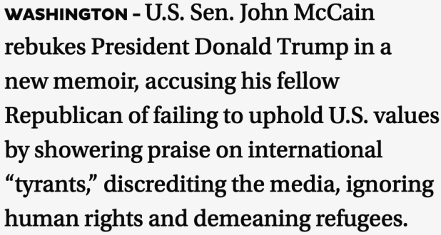 Blaming Moslems for White Nationalist terrorism is totally insane. And McCain doesn’t do it in defense of white people either. The defense of white people is: “they deserved it.”